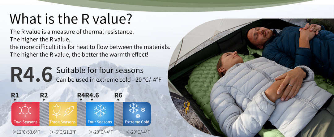 4.6 R-Value for Extreme Cold – Rated for temps as low as -4°F (-20°C), with 8cm (3.2 in) thickness for superior shock absorption and insulation.