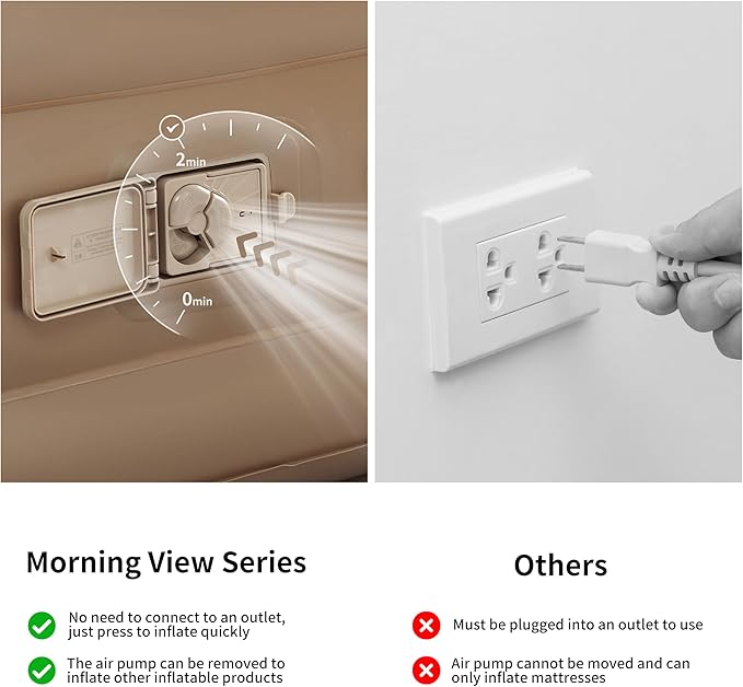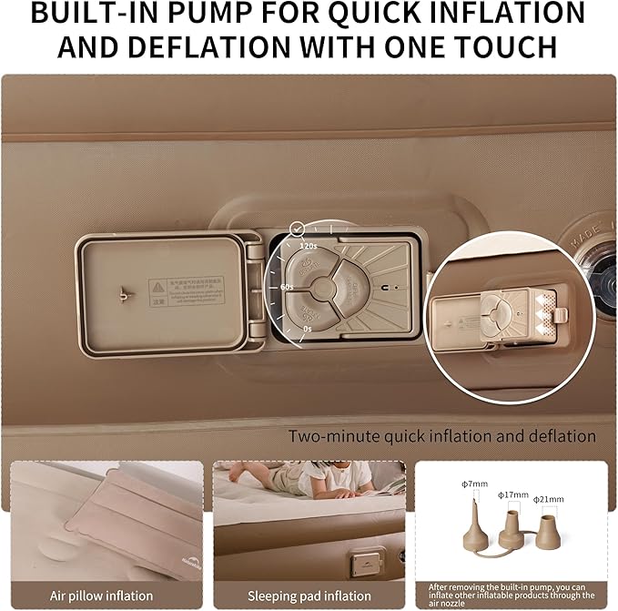 • Patented Built-in Pump – USB rechargeable pump inflates or deflates in just 3 minutes, usable 3–5 times per charge