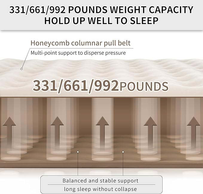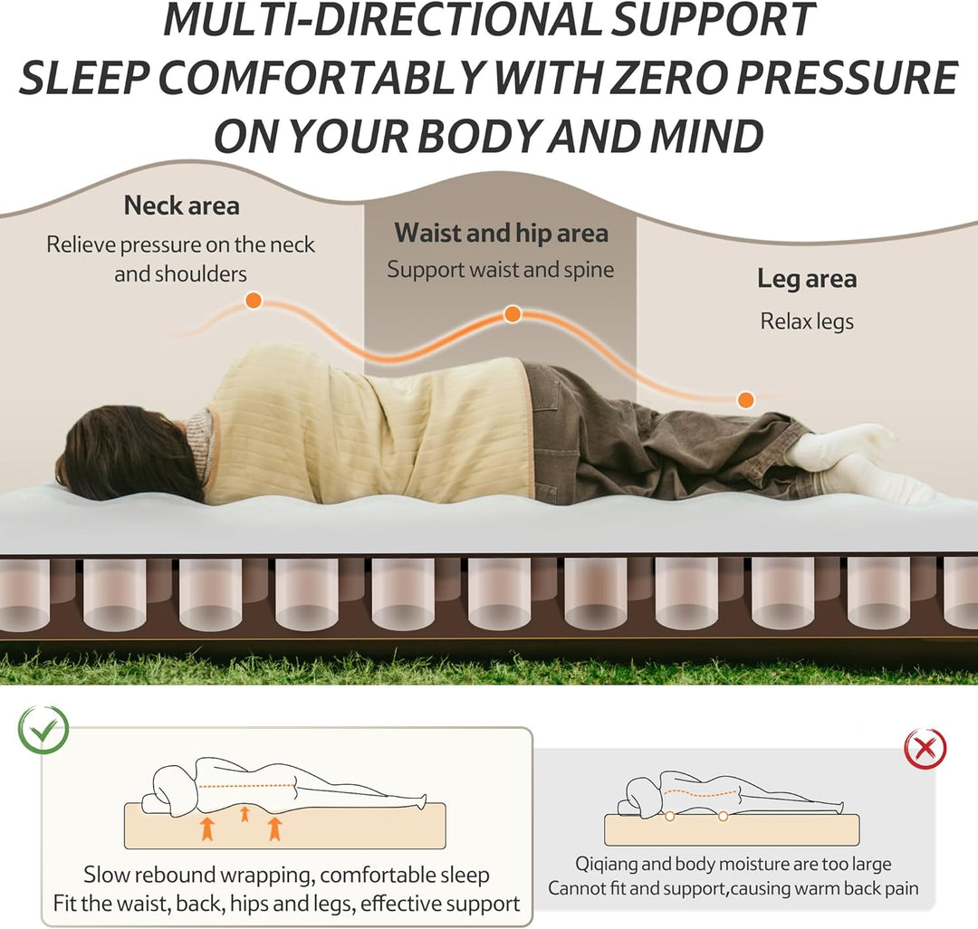• Honeycomb Support System – Composite elastic columns evenly disperse pressure, supporting up to 661lb for cloud-like comfort