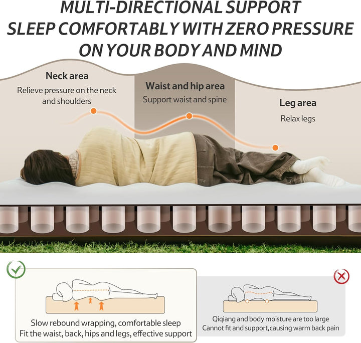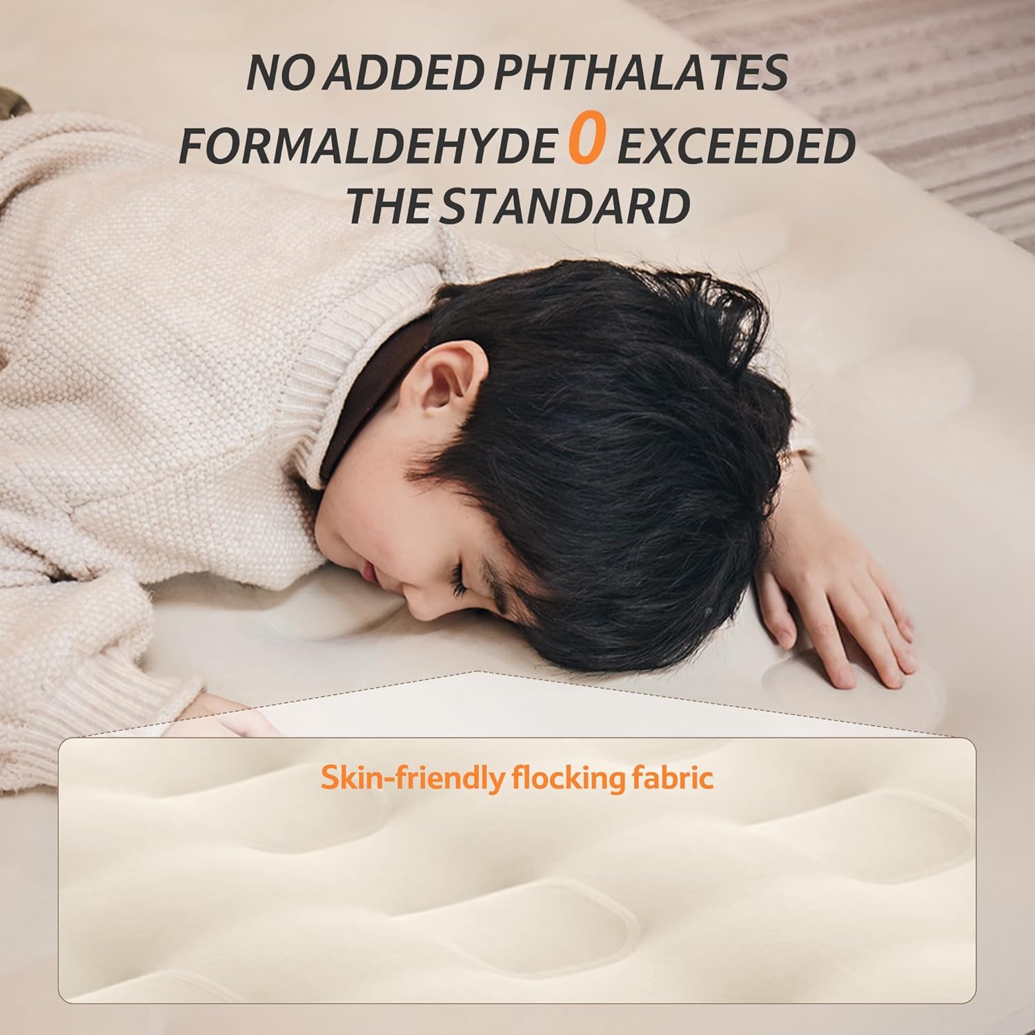 • Durable & Safe Materials – Skin-friendly flocked PVC is formaldehyde-free, breathable, and quiet for a restful night