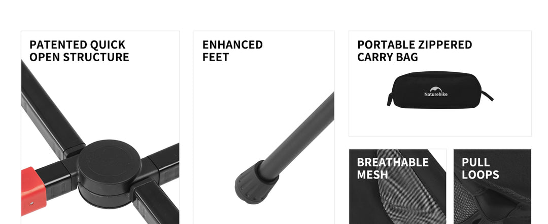 The Naturehike YL01 Snap Chair uses a patented elastic-cord frame that assembles instantly—no tools, no hassle. Whether you're deep in the woods or by the campfire, enjoy quick, reliable comfort the moment you need it.