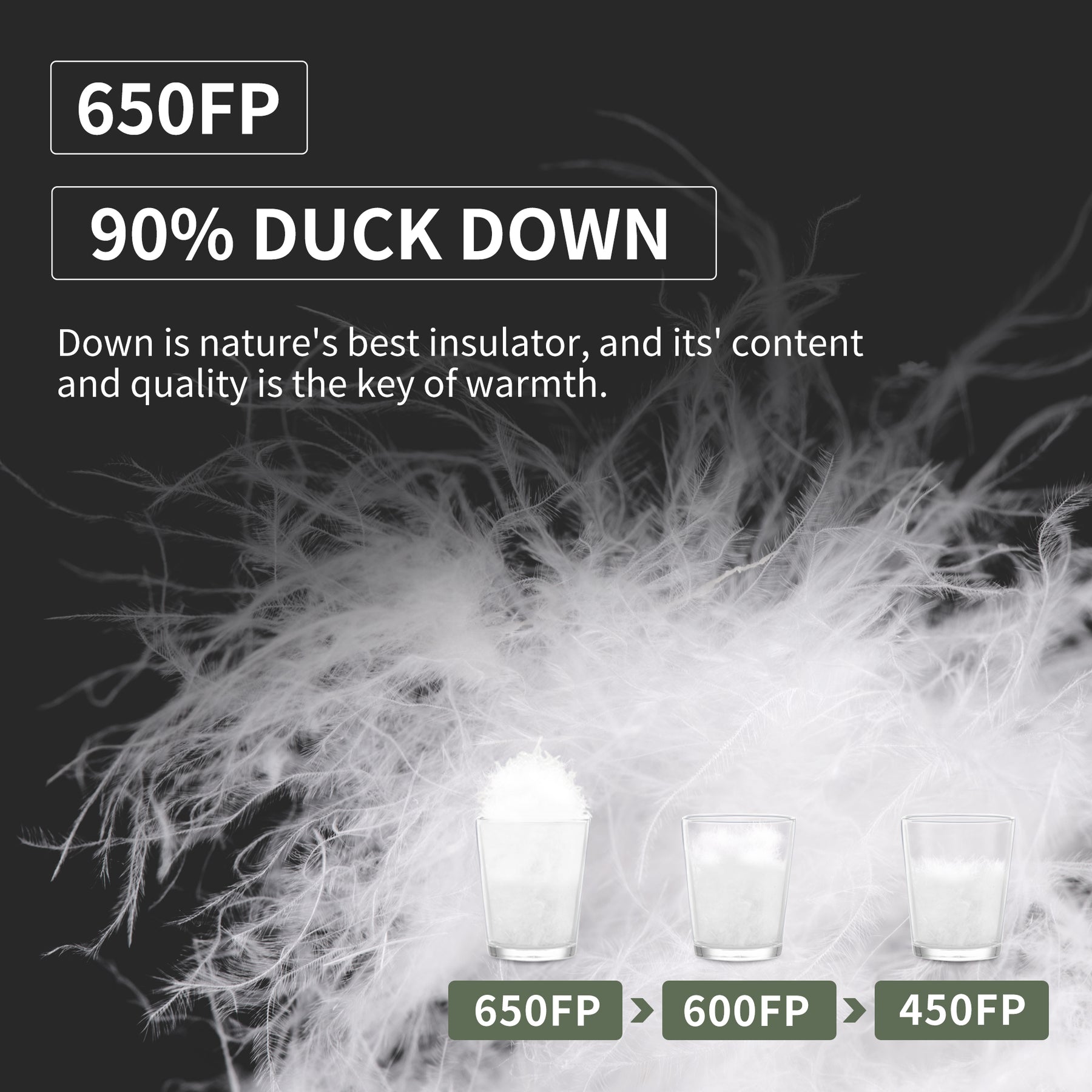 Insulation: 90% Duck Down (650FP) + Hollow Cotton (160GSM x 3)