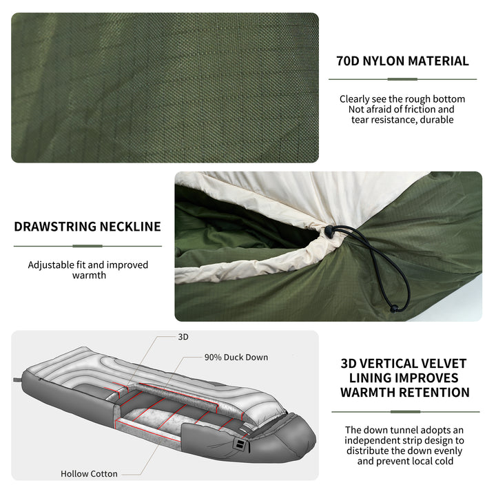5. Durable & Portable: Despite its robust construction, the sleeping bag is designed for easy packing, with a compact storage size of 35x50cm and a weight of approximately 3800g.